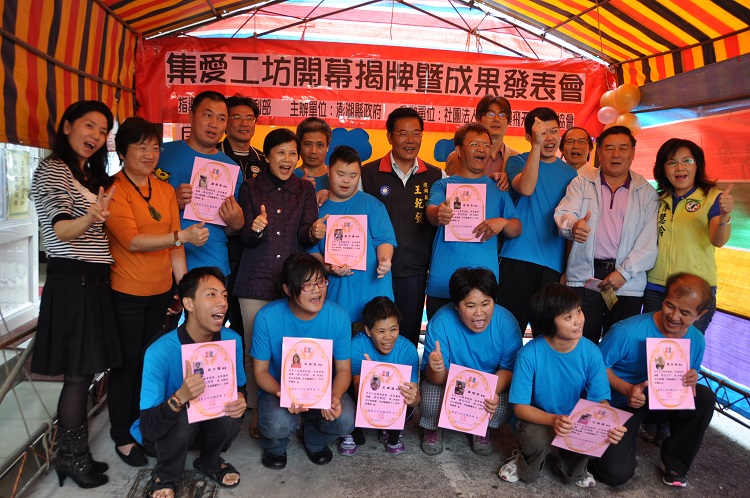 澎湖第2處身心障礙者社區日間作業設施-集愛工坊,11月15日正式揭牌展開了一段新的旅程,縣長王乾發、議長劉陳昭玲等地方政要與社福界人士前往祝賀,同步呼籲社會參與他們,關心他們,也投入去支持這群身心障礙朋友的工作夢。集愛工坊自101年成立試營運至今,共計服務十多名無法進入工作職場,又不希望安置在機構內接受照顧的身心障礙者。在試營運期間,努力教育機構內的身心障礙者,在社區參與中學習人際溝通的,在工作過程學習獨立,創造屬於自己的產值,從減輕家庭負擔中尋找到自己存在的位置,經過一年多的原型塑造,集愛工坊終於在近日繼魔豆小舖後,成為澎湖第二間的身心障礙者準庇護工廠。回想101年澎湖第1處身心障礙者社區日間作業設施-魔豆手作工房成立,短短一年時間,澎湖第2間集愛工坊竟很快速的成立。工坊的設立,為慢飛天使弱勢鄉親提供了一個家,給予工作的場所,更是人生的機會。集愛工坊成立的費用是由政府部門來支出,包含未來營運的經費也都會給予協助,在創造初期提供最強的後盾,提供身心障礙朋友自立的機會,當然長期目標是身心障礙朋友可以獨立生產。創造價值與存在感,透過自己的產值讓機構可以順利運作下去,這也是庇護工廠必須面對的課題,準競爭市場的參與其實是很艱辛的,當然有能力的民眾適當伸出援手給予協助,在機構發展初期是非常重要的。