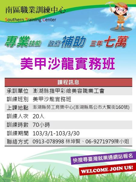 圖片附件: [3年7萬~政府職訓補助課程-招生中-美甲沙龍實務班(澎湖班)]