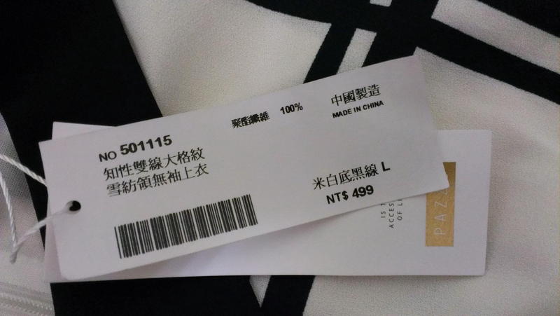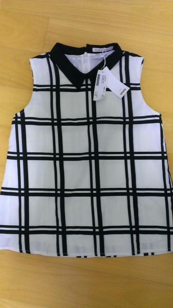 PAZZO全新知性雙線大格紋雪紡領無袖上衣 吊牌未拆