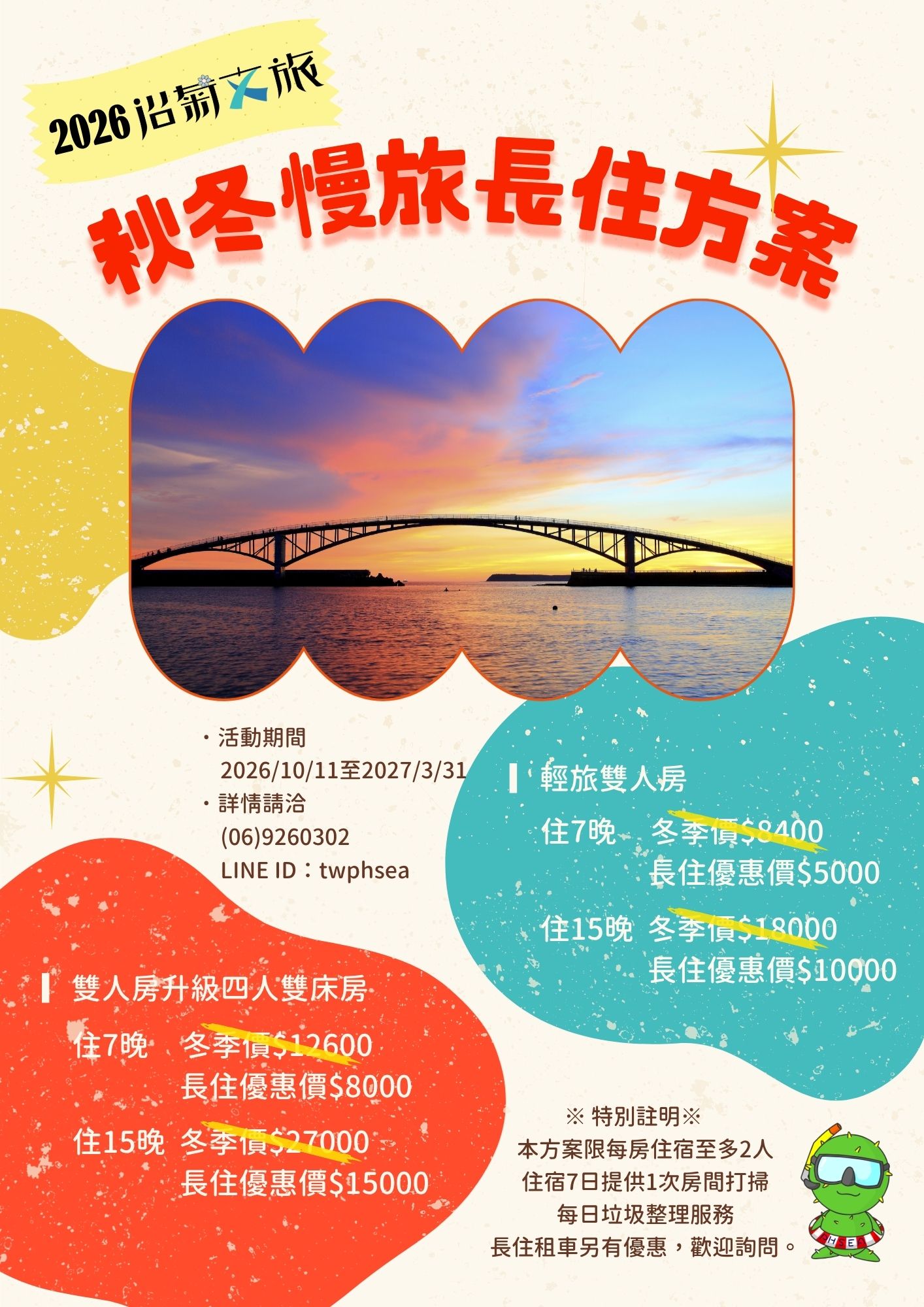 *優惠訂房:本優惠限定電話訂房或LINE訂房使用。